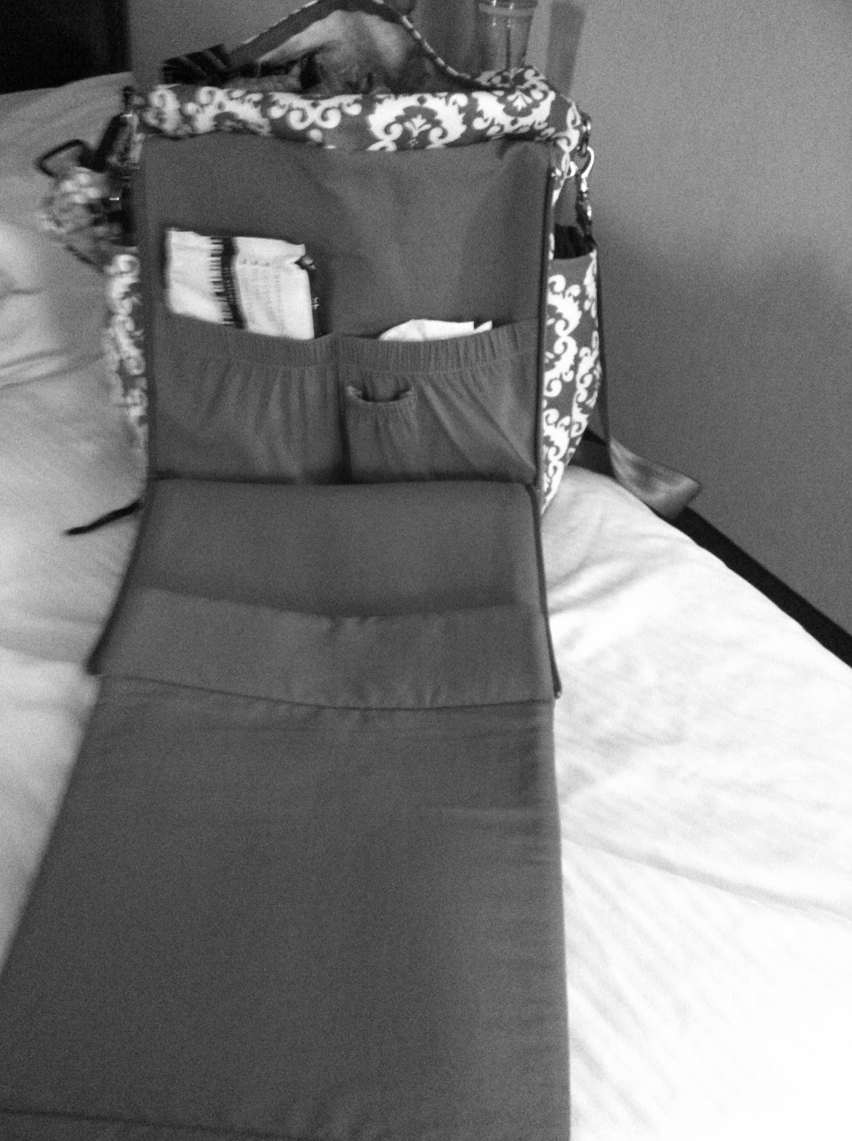 | thank your mother in law for buying a diaper bag that doubles as a changing table. |