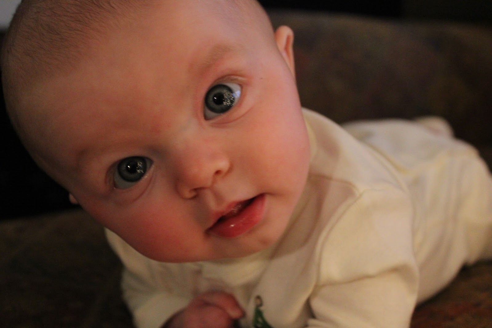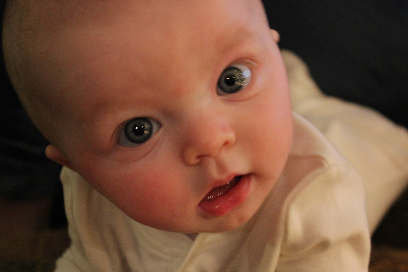 You’ve started screeching these past few days. It’s an awful noise that makes us laugh (almost) every time. You love to talk. You love to sit on my lap- you’d sit there forever if I’d let you. You hate being hungry. You hate being patient. You hate your carseat. Your temper, loud and fast and shocking, comes straight from your daddy. Your babble, happy and social and demanding, is just like your mama. Your blue eyes, lovely enough to draw compliments from everyone we meet- those are from both of your grandpas.