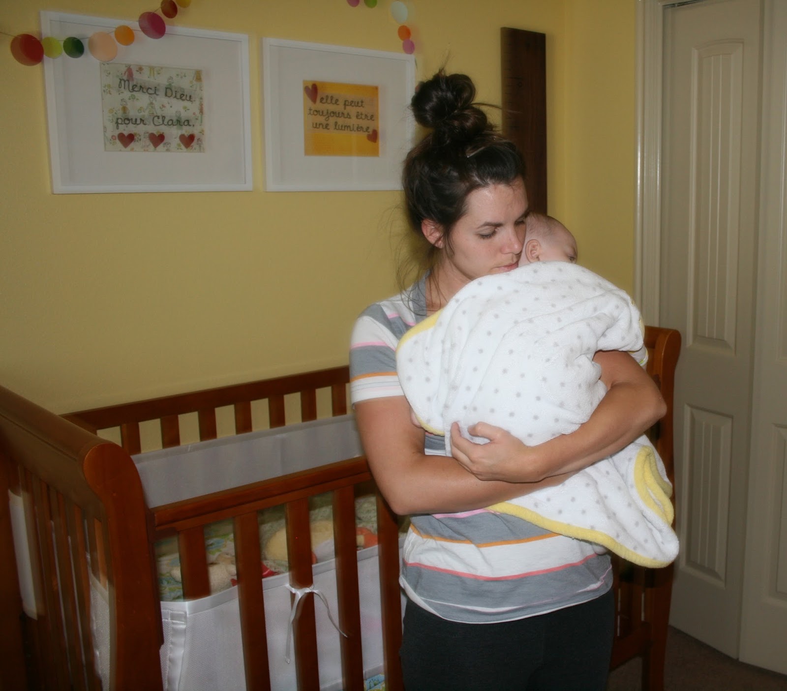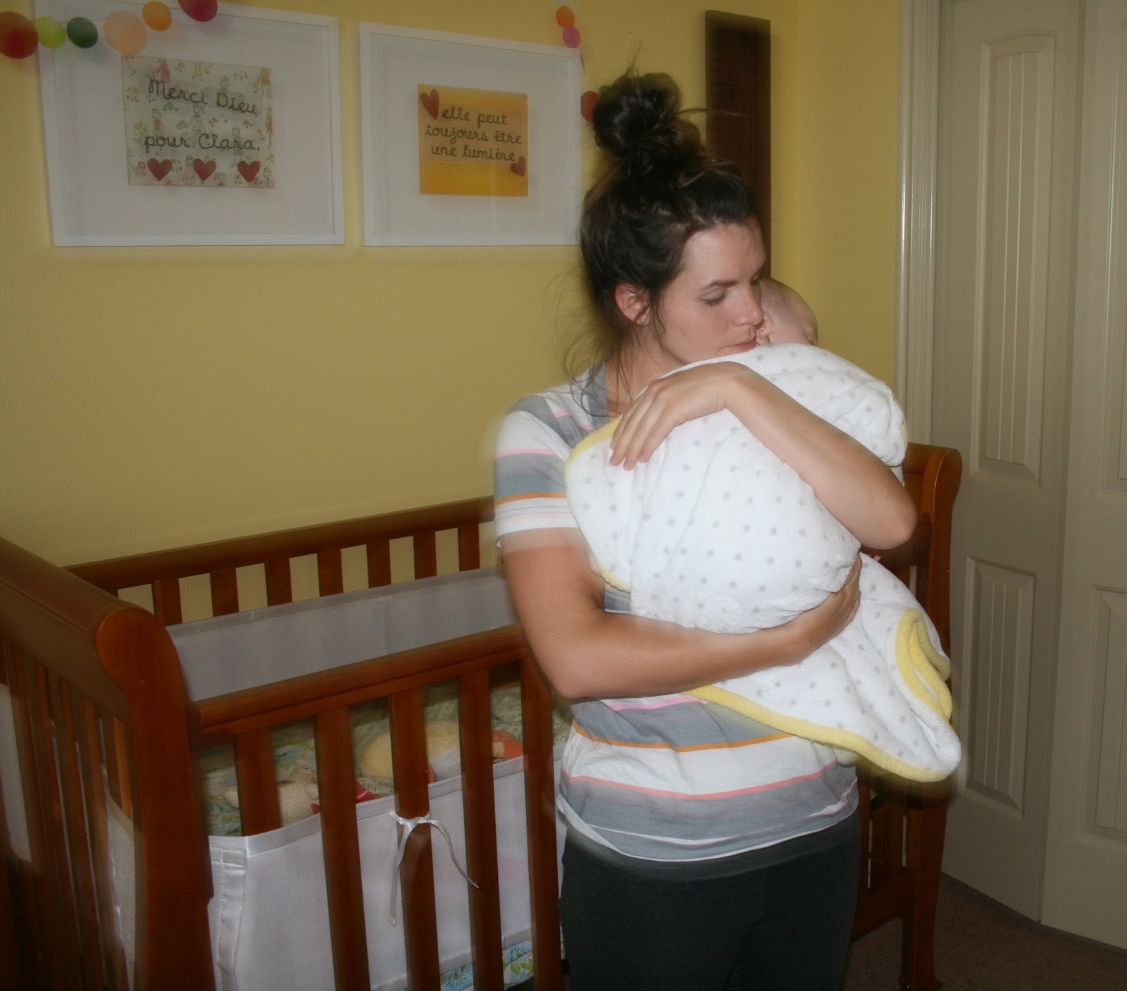 These pictures are from a few nights ago. Clara let me hold her as she fell asleep, which has happened about twice since she was a newborn (the girl has got quite the independent spirit, let me tell you). You should’ve seen me; I was like a hiker who looks up and notices a deer lapping from a stream. I wouldn’t move for fear of chasing the moment away. Especially since she is almost one, almost a toddler, a thought that makes me weepy. I motioned to Sam to please take a picture of the moment for me, in case there are not very many of them left to come. He did, and although I am in my pajamas with no makeup and they are a little blurry because the room was so dim… they have become a few of my favorite shots of all time.