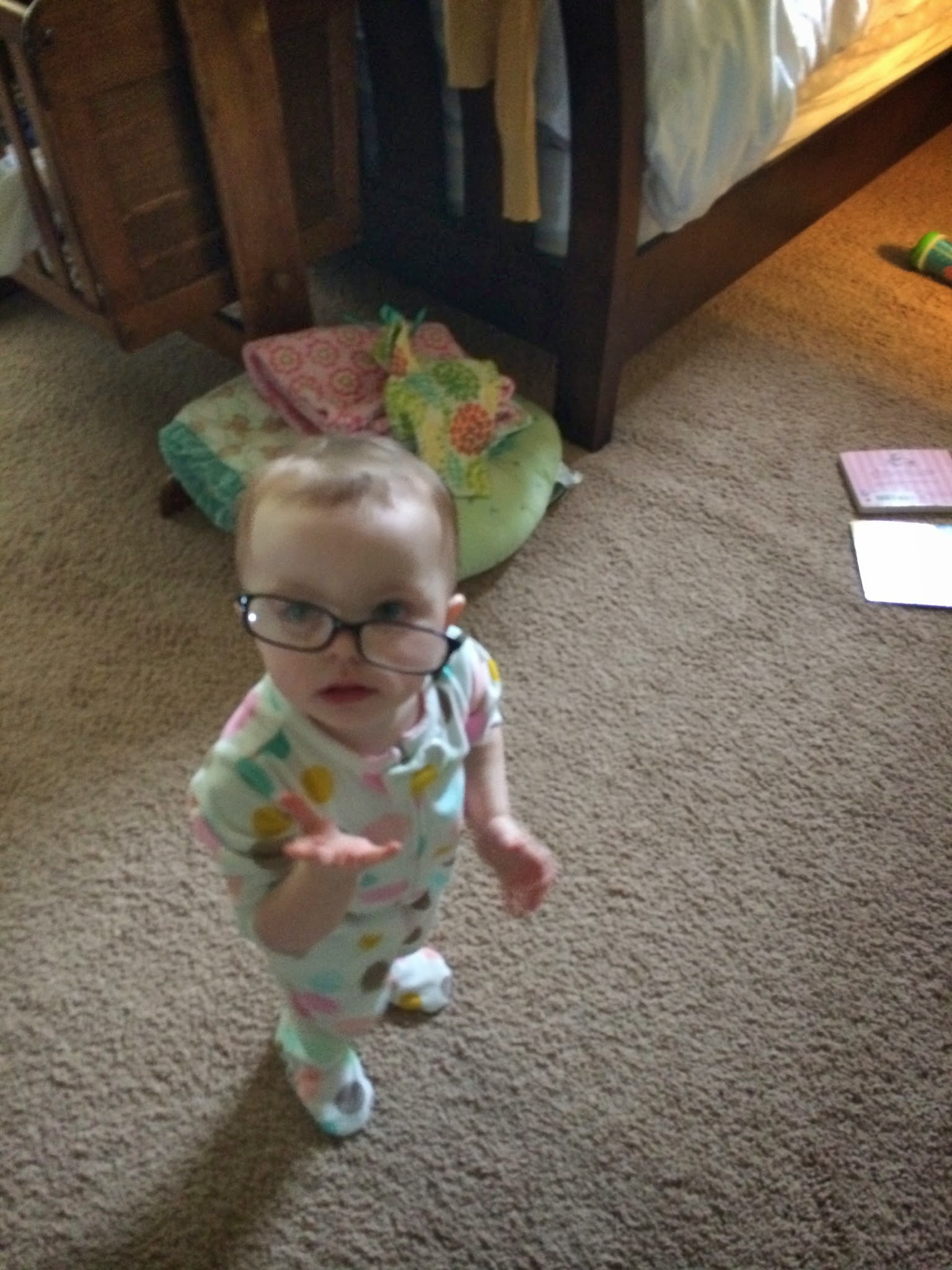 You run everywhere. You are small, so short, and the literal pitter patter of your tiny feet on the hardwood makes me swoon, it honestly does. You are the embodiment of my dreams, a real life daughter who is all mine and who runs through my house with a spark in her eye and a used tube of lip loss in her hand. The looks you give keep us in stitches, so naughty and funny and smart. It’s difficult to discipline you because you are just so funny.