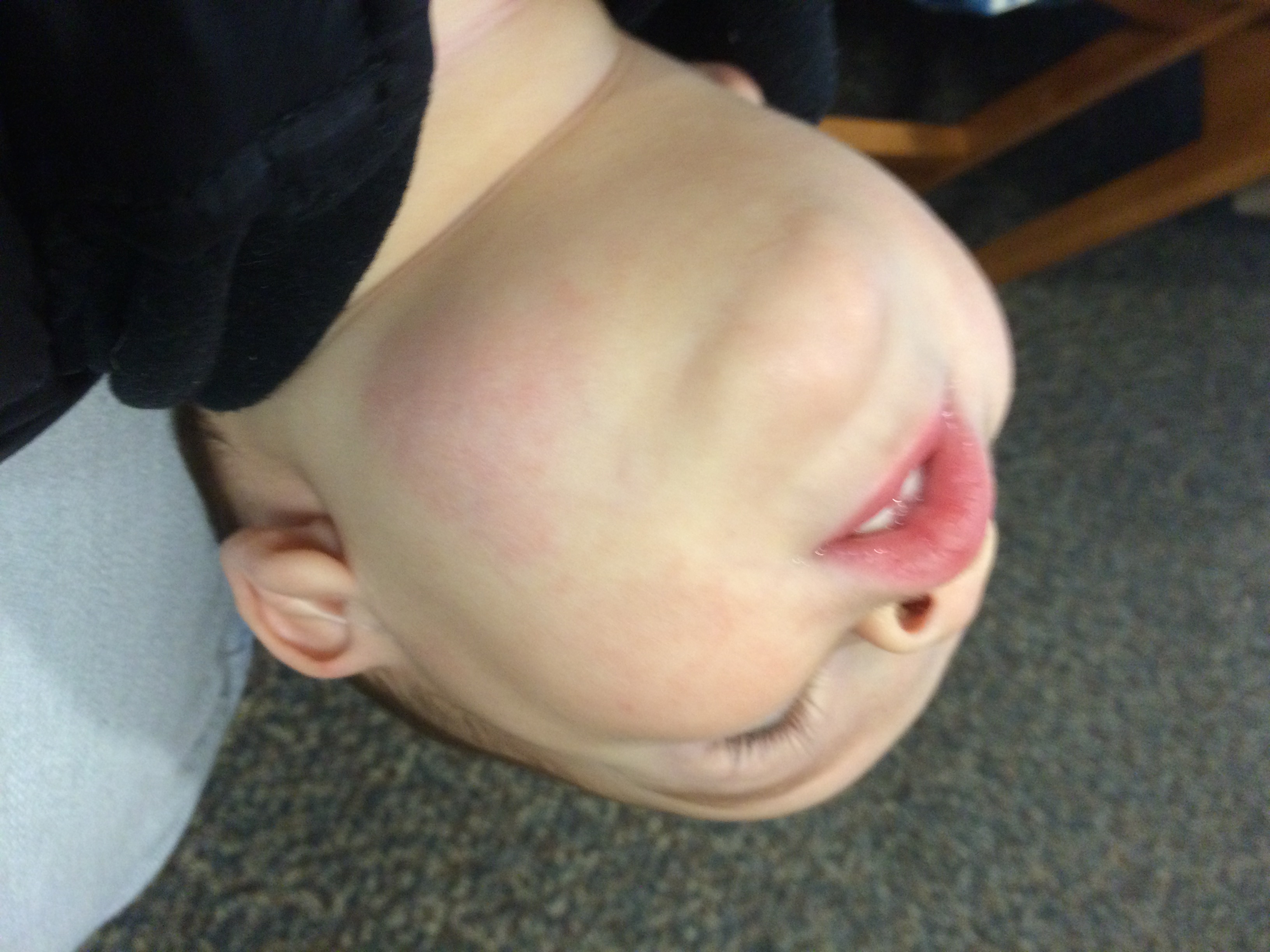 Then I stopped short. His face didn’t just look chubby; it looked swollen. Disproportionate, even. I grabbed him from his dad and felt his cheeks, then ran my fingers under his chin. The left side of his neck had a bulge in it, rock hard and the size of a bouncy ball. I felt it again, felt the fever on his forehead, and stood up in a panic.