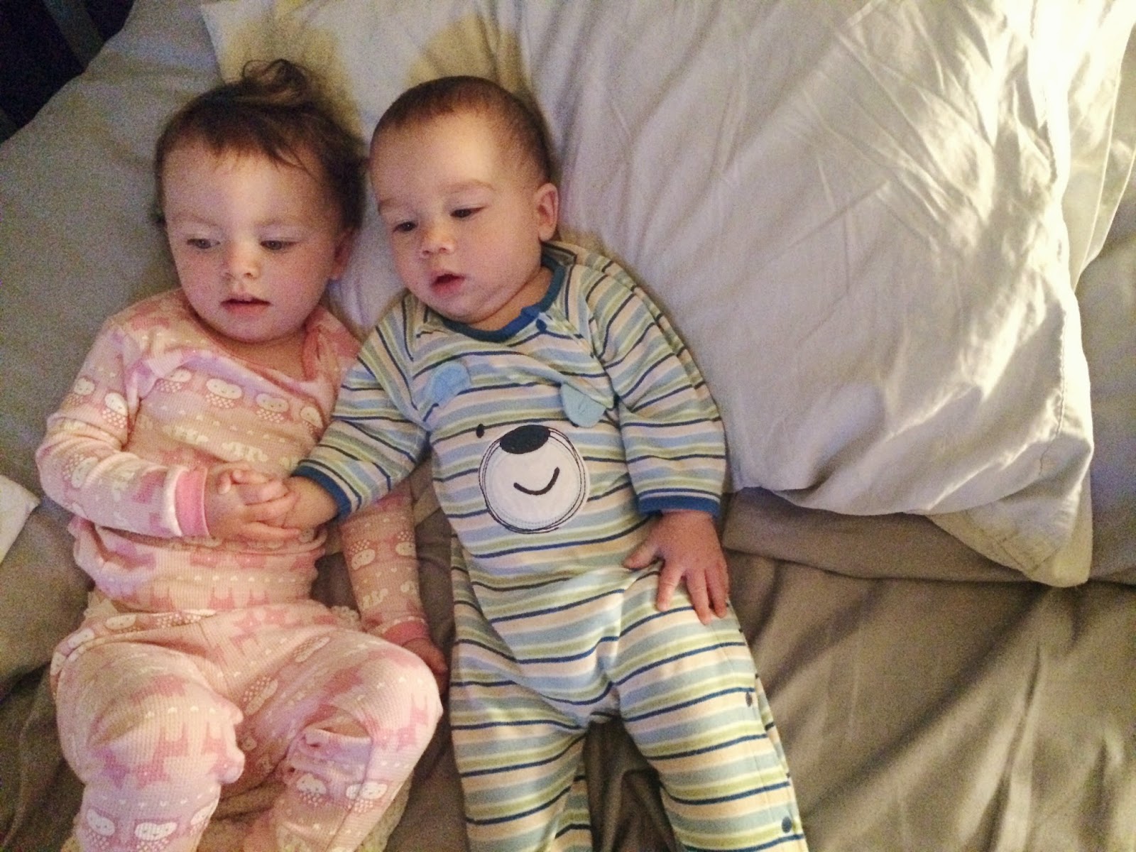They have their own beds, I promise. She asks to sleep in the crib with him almost every night, and I can’t say no to this level of cuddliness.